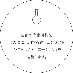 10年の現場ノウハウから生まれた低コスト・低環境負荷型の自然浄化能力を最大限に引き出すオリジナル施工法です。