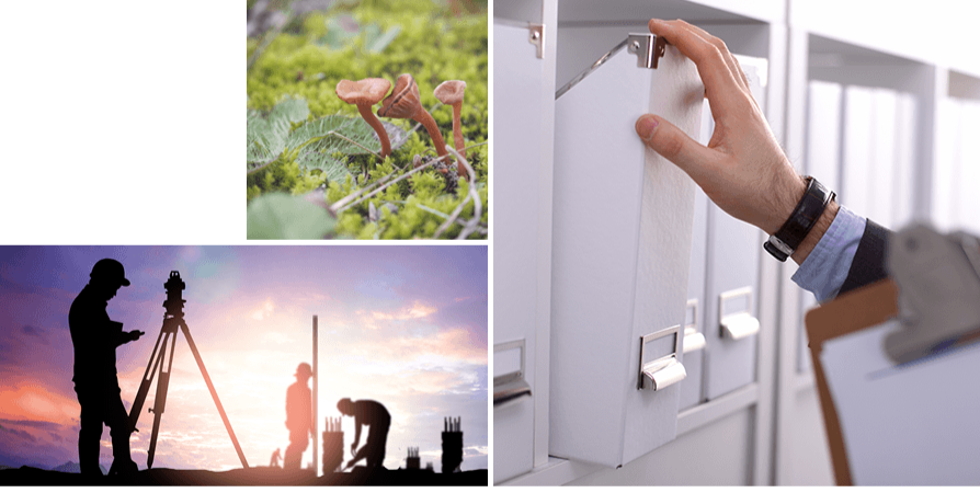 資料調査、聴取調査および現地調査から土地の使用履歴などを確認し、汚染のおそれを評価します。